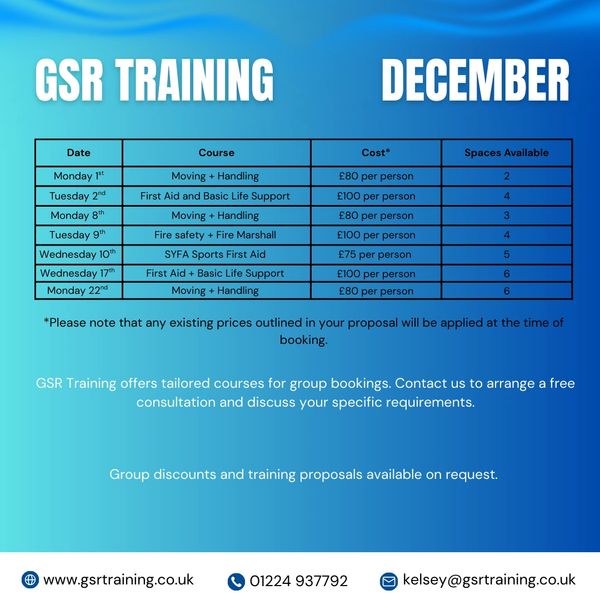 If you’re an individual or workplace interested in booking this course, please email - bookings@gsrtraining.co.uk